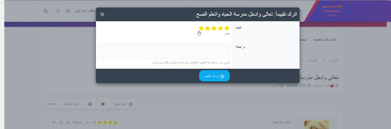 الان عند دخول اي موضوع ستجد اترك تقييما ما عليك سوي الضغط عليه وتحديد تقييمك للموضوع من خمس نجوم وايضا يمكنك كتابه سبب منحك هذا التقييم وهذا اختياري
